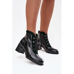 Dámské botky vyrobené z přírodního lesklého kůže jsou nabídkou pro ženy, které si cení eleganci ve moderním provedení. Lesklý povrch kůže jim dodává jedinečný charakter a dělá je skvěle vypadající jak v každodenních, tak ve více společenských stylingech. Na přední straně jsou umístěny dekorativní detaily, které zdůrazňují jejich unikátní vzhled. Zaoblené špičky. Zapínání na zip usnadňuje obutí a svlékání. Vnitřek je vybaven měkkým dotekem textilní podšívkou, která jemně zahřeje a zajistí pohodlí v chladnějších dnech. Jsou to botky, které se skvěle osvědčí v podzimně-zimní sezóně, představují elegantní a univerzální prvek ženského šatníku.