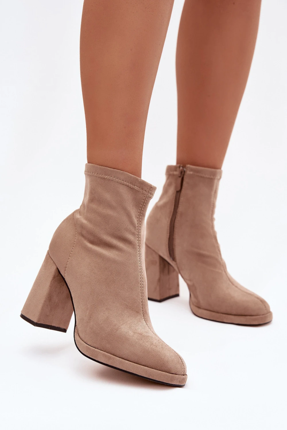 Dámské botky vyrobené z ekologického semiše jsou stylovým modelem ideálním na chladné dny. Umístěné na stabilním sloupkovém podpatku jemně zdůrazňují postavu a zároveň zajistí pohodlí při nošení. Zapínání na zip usnadňuje obouvání a dekorativní prošívání přidávají módní charakter. Jedná se o univerzální botky, které skvěle doplní jak každodenní, tak více elegantní stylizace.