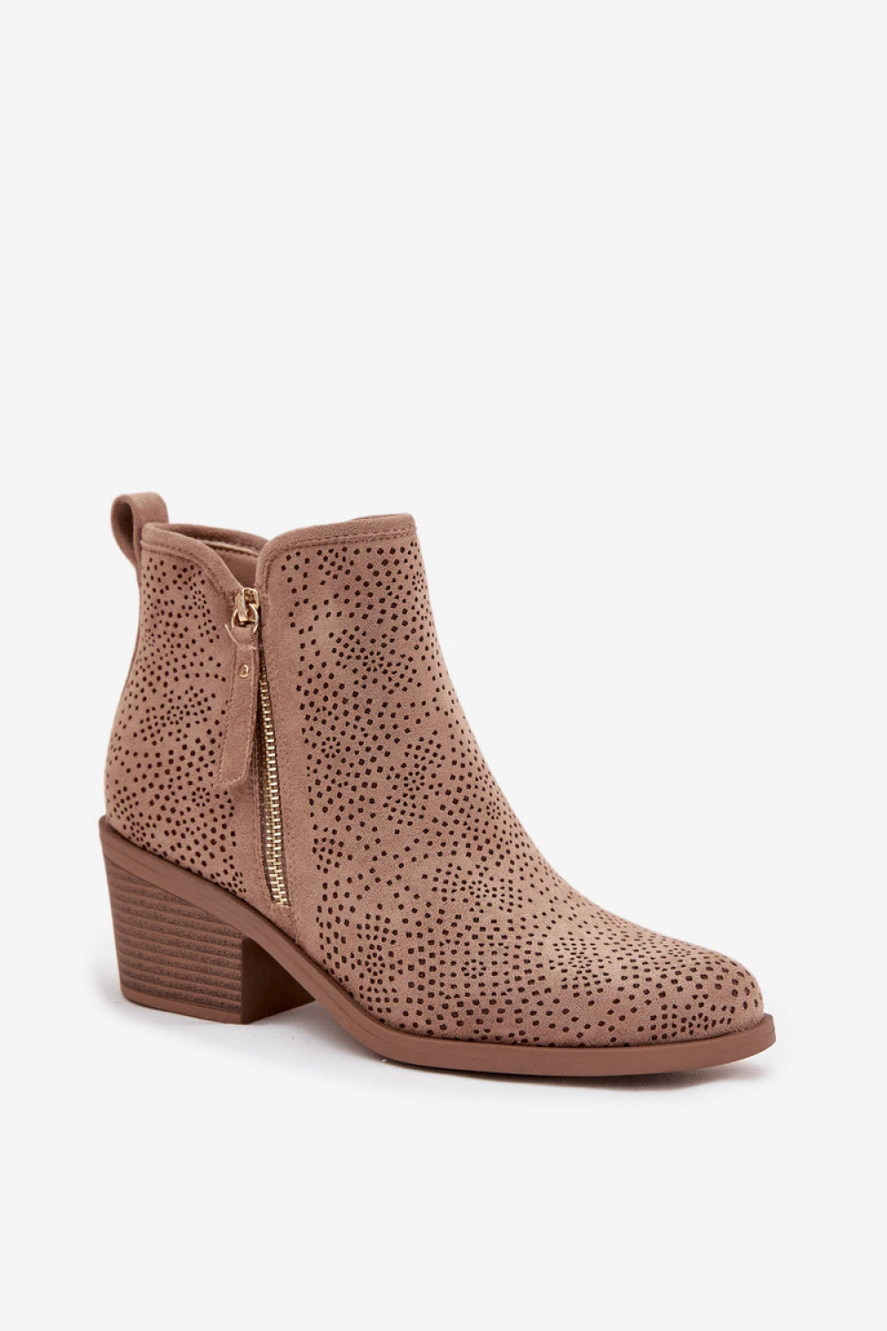 Dámské kotníčkové boty v westernovém stylu od značky S.Barski. Vyrobené z vysoce kvalitních materiálů, elegantně vypadají a přitahují pozornost detaily. Model je umístěn na stabilním, štíhlém sloupkovém podpatku, který poskytuje pohodlí a pohodlí při chůzi, zároveň jemně zjemňuje siluetu. Mandlovité špičky dodávají botám ženský charakter a zdůrazňují elegantní linii nohy. Botky mají praktický zip, který usnadňuje obouvání a svlékání, a další ozdobný zip slouží jako stylový detail, dodávající celému modelu moderní a originální vzhled. Ideální obuv pro každodenní styly i pro outfitové inspirace boho módou.