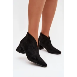 Elegantní dámské kotníčkové boty z ekosuede jsou stylovým návrhem pro ženy, které si cení módního vzhledu a pohodlí. Model je umístěn na stabilním podpatku ve tvaru kostky, který poskytuje pohodlí během chůze. Špičaté špičky opticky zjemňují nohu a dekorativní švy běžící podél svršku vpředu dodávají celku moderní charakter. Na zádech je praktický zip, usnadňující obouvání bot. Vnitřek je dokončen měkkou vložkou z ekokože, díky čemuž se kotníčkové boty skvěle hodí na každý den i na speciální události.