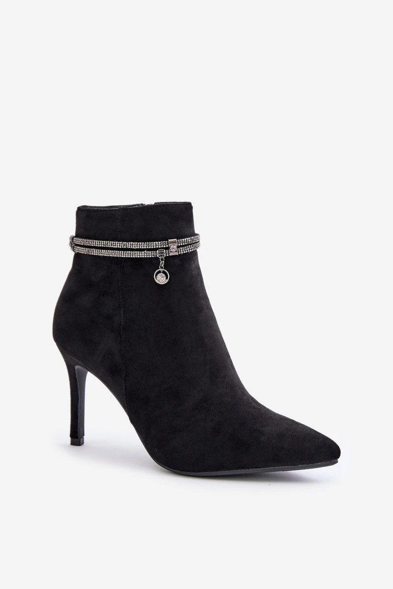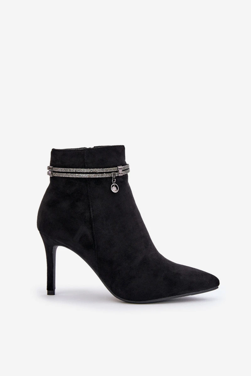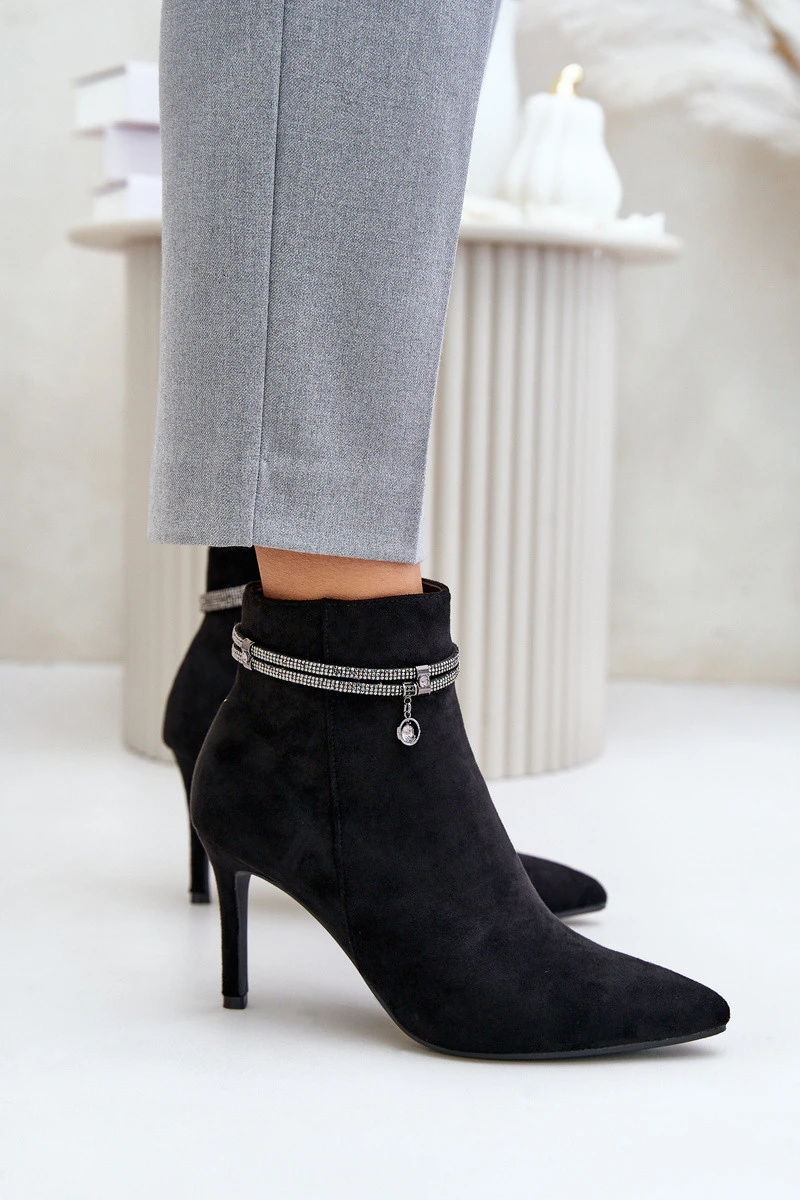 Boty Na Podpatku S Dekorativním Pásem Eko Sametové Vinceza 16469 Černé