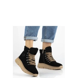 Černé botky z přírodního semiše s ozdobnou šněrovací šňůrkou Grega Filippo jsou nabídkou pro ženy, které ocení spojení elegance, pohodlí a moderního designu. Vyrobené z vysoce kvalitního přírodního semiše působí velmi stylově a zároveň jsou příjemné na dotek a dobře se přizpůsobují noze. Klasický, hluboký odstín černé způsobuje, že tyto dámské botky lze snadno sladit jak s každodenními, tak s elegantnějšími stylizacemi. Charakteristickým prvkem modelu je ozdobná šněrovací šňůrka Grega, která boty dodává originalitu a zdůrazňuje jejich jedinečný charakter. Díky ní získávají černé botky lehce rockový, ale zároveň ženský výraz. Jsou to ideální volba pro ty, kteří chtějí vyniknout z davu a hledají obuv s módním detailem. Stylové šněrování nejen zdobí, ale také umožňuje lepší přizpůsobení svršku tvaru nohy. Značka Filippo je známá pro svou péči o pohodlí, proto jsou černé botky ze semiše vybaveny stabilní podrážkou a dobře tvarovaným interiérem. To zaručuje pohodlí při nošení po celý den, bez ohledu na intenzitu pohybu. Tyto botky Filippo se skvěle osvědčí v podzimně-zimní sezóně - semišový svršek, správný střih a solidní provedení zaručují trvanlivost a praktičnost. Univerzální střih znamená, že černé botky z přírodního semiše s ozdobnou šněrovací šňůrkou Grega lze snadno sladit s džínami, legínami, šaty nebo sukní. Jsou to skvělá volba do práce, na univerzitu, setkání s přáteli nebo večerní výlety. Tyto elegantní botky každodenně zdůrazní tvůj styl a dodají charakter každé stylizaci. Vybráním dámských botek Filippo se rozhodujete pro kvalitu, módní vzhled a pohodlí chůze. Pokud hledáte obuv, která se osvědčí v mnoha situacích a zároveň vám umožní vyjádřit váš individuální styl, černé botky z přírodního semiše s ozdobnou šněrovací šňůrkou Grega budou ideálním řešením. Vsadte na nadčasovou černou, měkký semiš a originální detaily, které přitahují pozornost.