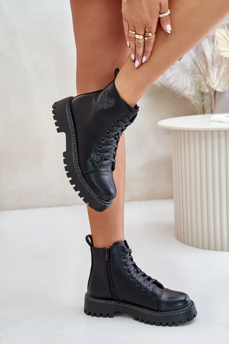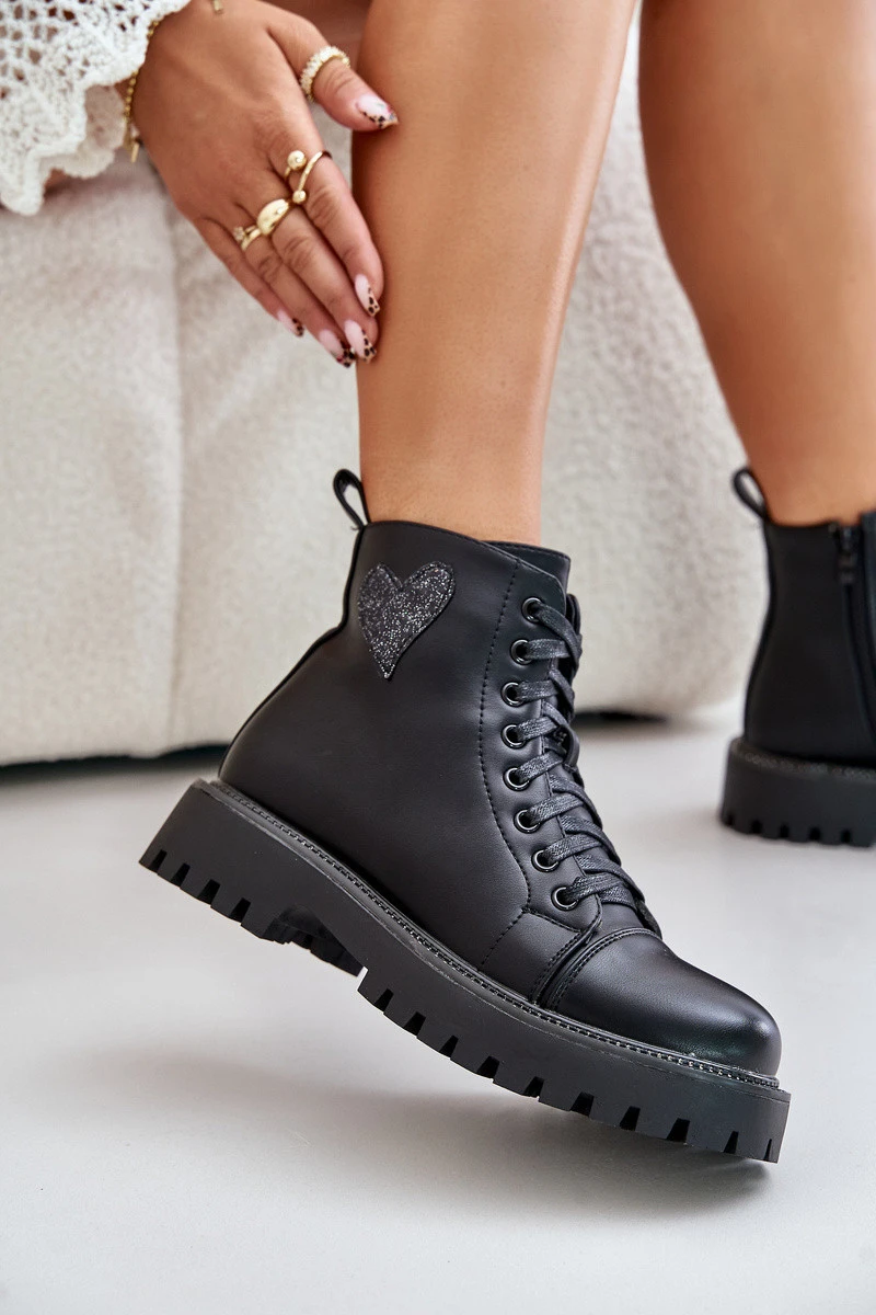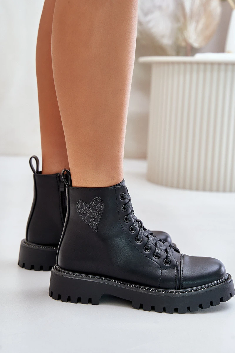 Stylové boty s nízkým svrškem, zapínání na zip. Svršek ozdobený třpytivým srdcem jim dodává kouzlo. Zaoblené špičky. Hroty napodobující zirkony kolem podrážky zdůrazňují stylový vzhled. Ideální na každý den! Při výběru velikosti se řiďte tabulkou velikostí.