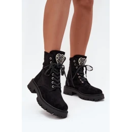Dámské botky vyrobené z eko semiše jsou módní a pohodlnou volbou na podzim a zimu. Zateplené obuvnickou vlnou, zajišťují teplo a komfort v chladnějších dnech. Svršek nad kotníky, šněrování vpředu a další zip na boku svršku zajišťují snadné přizpůsobení a pohodlné obouvání. Umístěné na plochém podpatku a platformě, zaručují stabilitu po celý den. Šperková dekorace na jazyku jim dodává elegantní akcent. Tyto botky se skvěle hodí k různým stylizacím a jsou skvělou volbou na podzimní a zimní sezónu. Při výběru velikosti prosíme, abyste se řídili tabulkou velikostí. Při výběru velikosti se řiďte tabulkou velikostí.