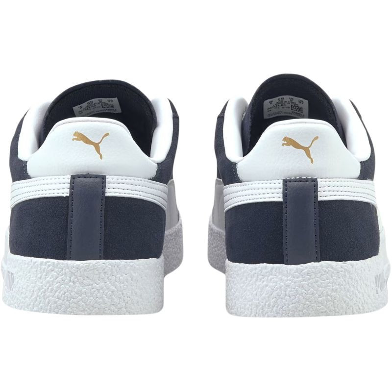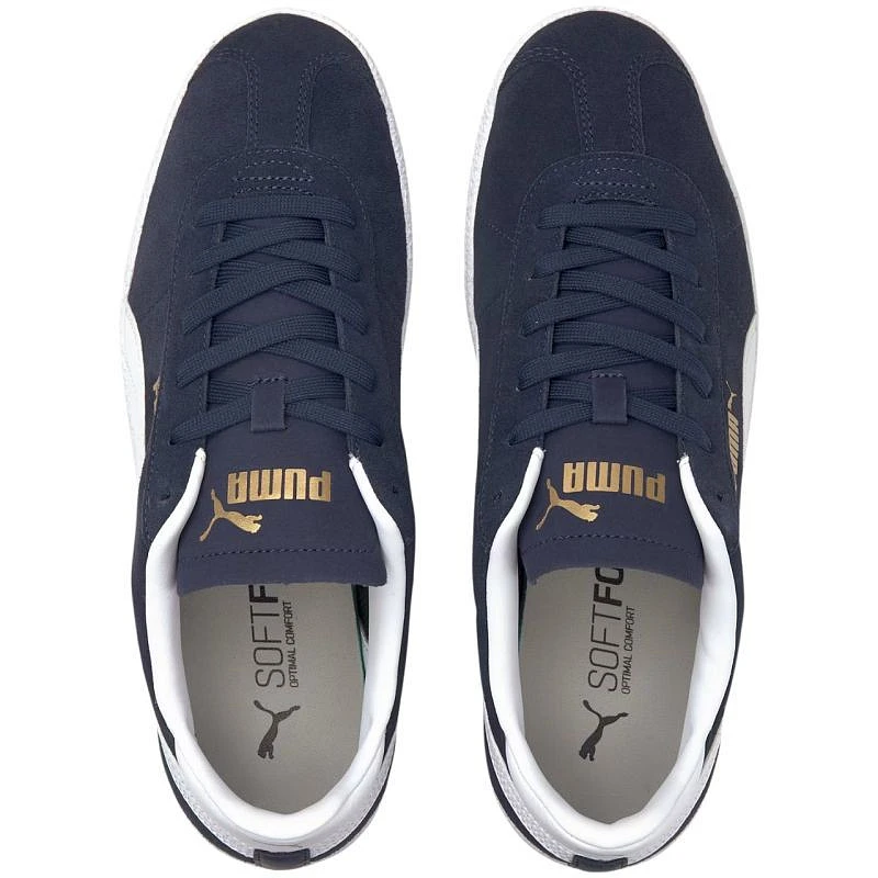 Boty Puma Club mají hladký a měkký svrchní materiál v kombinaci se syntetickou kůží. Vyříznutá pata, kožená podšívka a stélka SoftFoam+ zajišťují pohodlí na každém kroku. Těžká, gumová podrážka s logem PUMA. Zlaté prvky dodávají exkluzivní vzhled a styl.