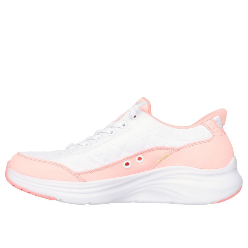Veganský nazouvací model s naším jedinečným polštářem Heel Pillow™, prošívaným svrškem Cozy Fit™ se syntetickými překryvy a podvazkovými elastickými tkaničkami, odpružením mezipodešve Contour Foam™ a stélkou s naším patentovaným odpružením Skechers Air-Cooled Memory Foam™.