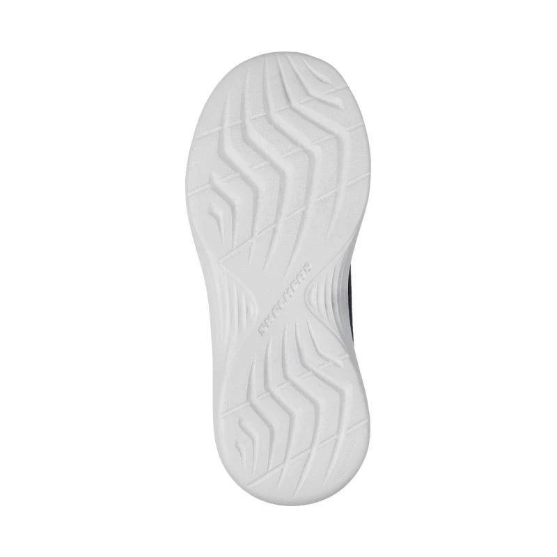 Dětská obuv Skechers pro každodenní nošení. textilní svršek se síťovanou strukturou se syntetickými výztuhami. elastické pásky připomínající klasické šněrování. adaptivní zapínání Skechers na suchý zip. gumová podrážka se postará o trakci.