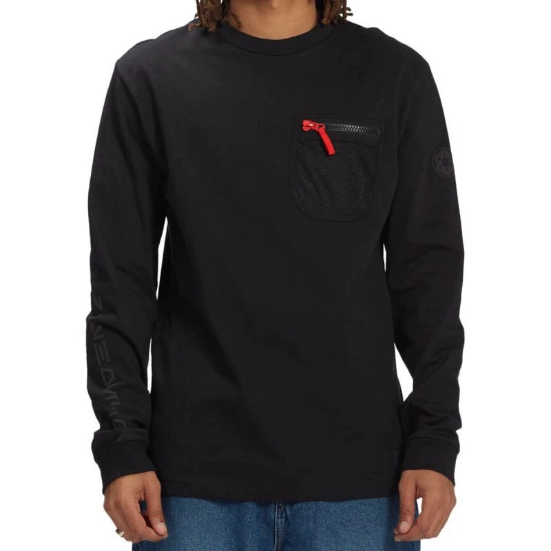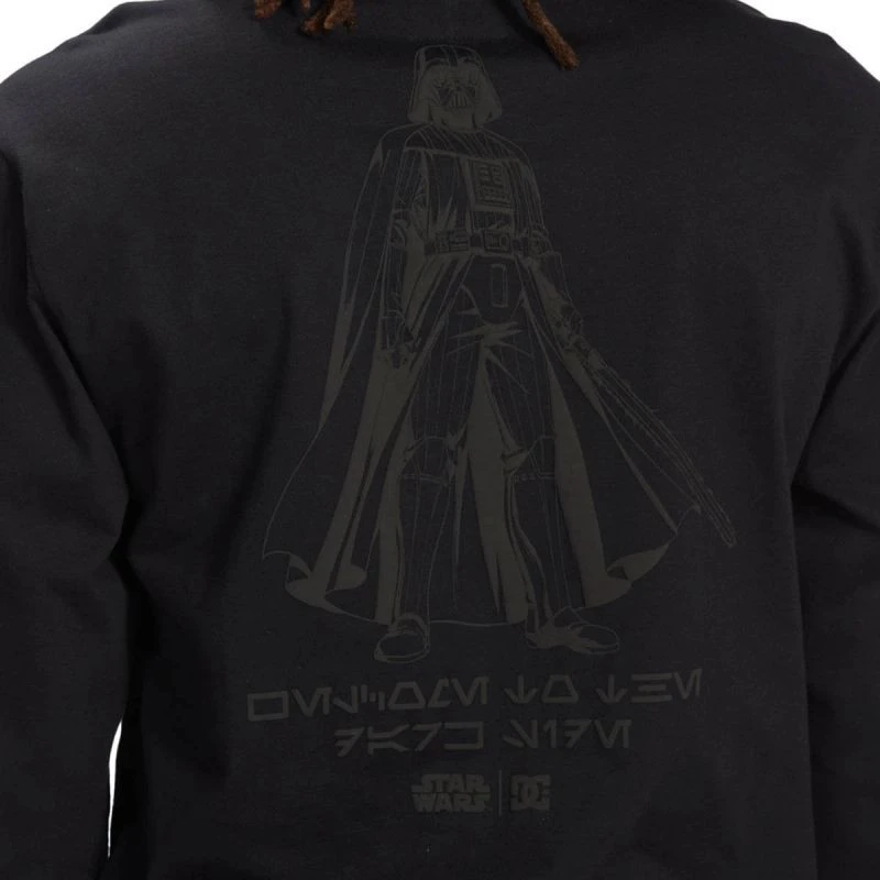 Bluza inspirowana kultową czarną zbroją Dartha Vadera™. Kieszeń z siateczki i zamek błyskawiczny na piersi subtelnie oddają hołd projektowi garnituru Vadera, a czarno-czarny nadruk z tyłu przedstawia samego Lorda Sithów wraz z napisem Aurebesh i logo Star Wars™ X DC Shoes Collection.