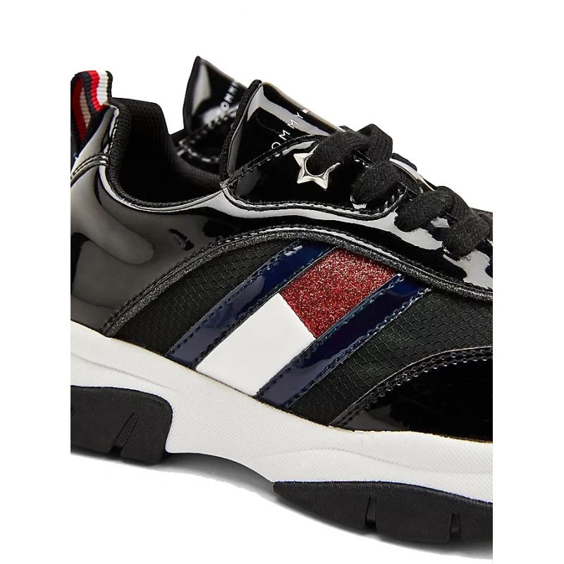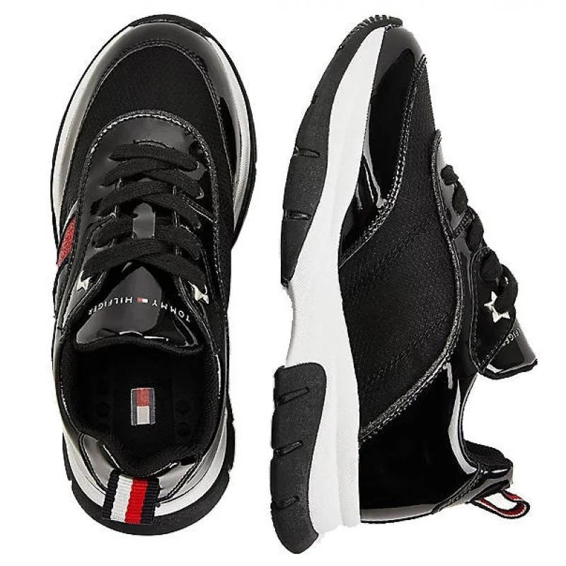- Tyto šněrovací sportovní boty na hrubé odolné podrážce vypadají úžasně díky lakovaným a třpytivým vsadkám na svršku.