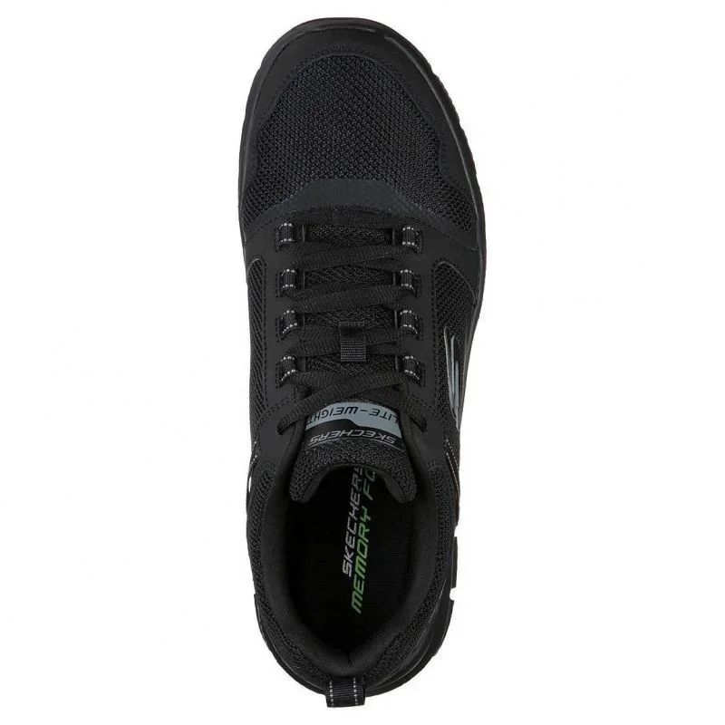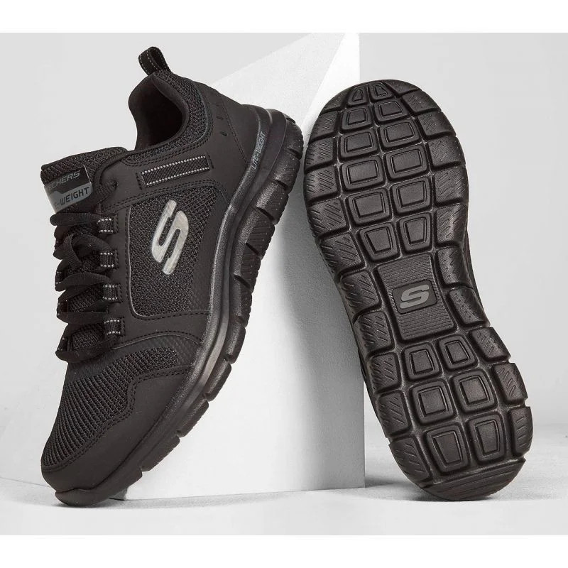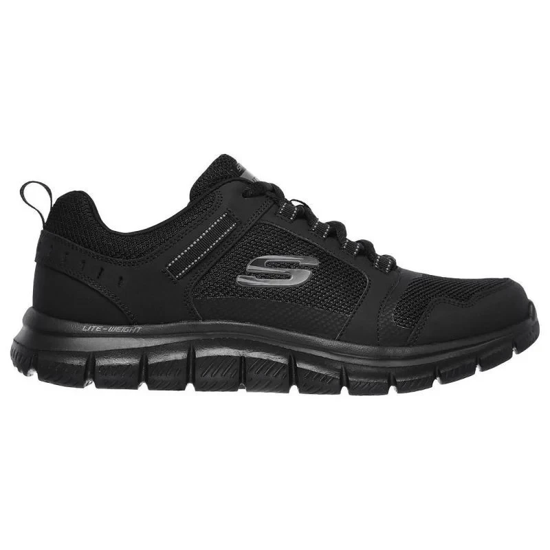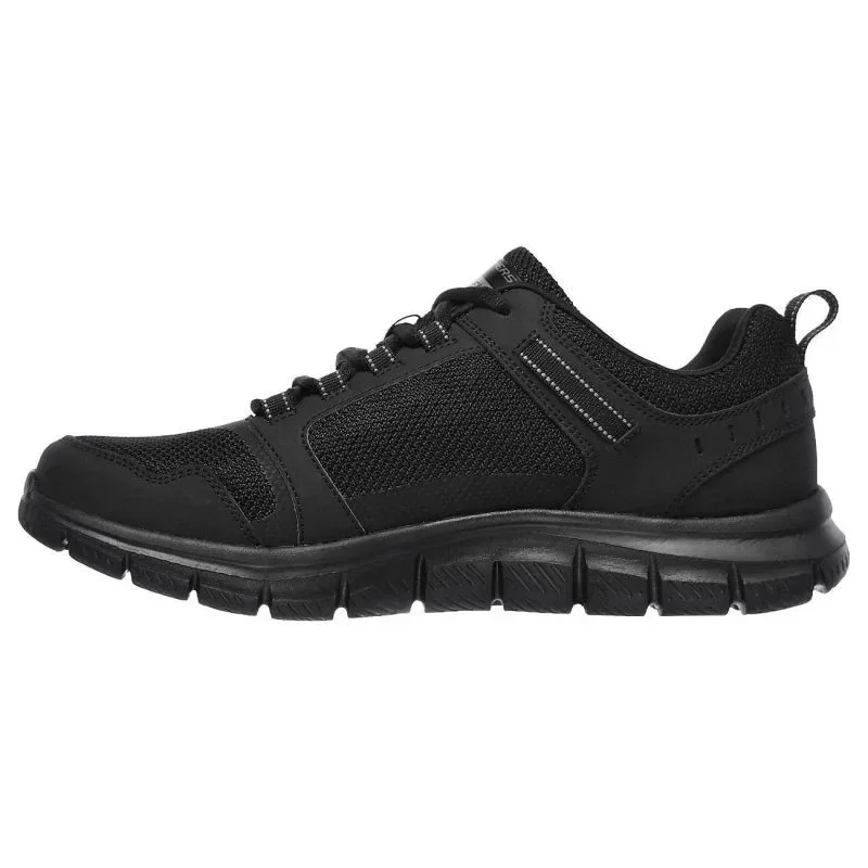 - Model Skechers Track Knockhill 232001 má svršek z hladké kůže a síťoviny ve šněrovacích sportovních tréninkových teniskách.