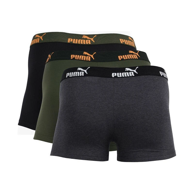 Bokserki męskie Puma 3-pack czarne 100003547 3732/004 020 Bokserki męskie Puma sprawdzą się podczas codziennego użytkowania. Oddychający fason uszyty z połączenia różnych materiałów. Dopasowany krój z krótkimi nogawkami. Elastyczna taśma w pasie z logo. W opakowaniu znajdują się 2 pary. Materiał główny: 95% bawełna, 5% elastan