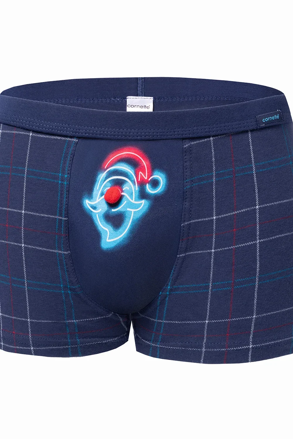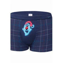 Pánské vánoční boxerky s veselým potiskem na klínu. Pozadí boxerek tvoří sváteční kostkovaný vzor. Potisk na klínu tvoří tvář Otce Vánoc, na jehož čepici je našita prostorná bambule. Tyto boxerky jsou zajímavou nabídkou jedinečného pánského spodního prádla pro ty, kteří mají smysl pro styl, a zároveň pro ty, kteří jsou sebevědomí. Pohodlné boxerky vděčí za své vlastnosti elastickému materiálu a také preciznímu zpracování. Ploché švy jsou šetrné k pokožce, beztlaková úprava nohavic zajišťuje maximální pohodlí a podpůrný pas je lemován měkkým materiálem, který je šetrný k pokožce. Boxerky jsou zabaleny v estetické krabičce.
