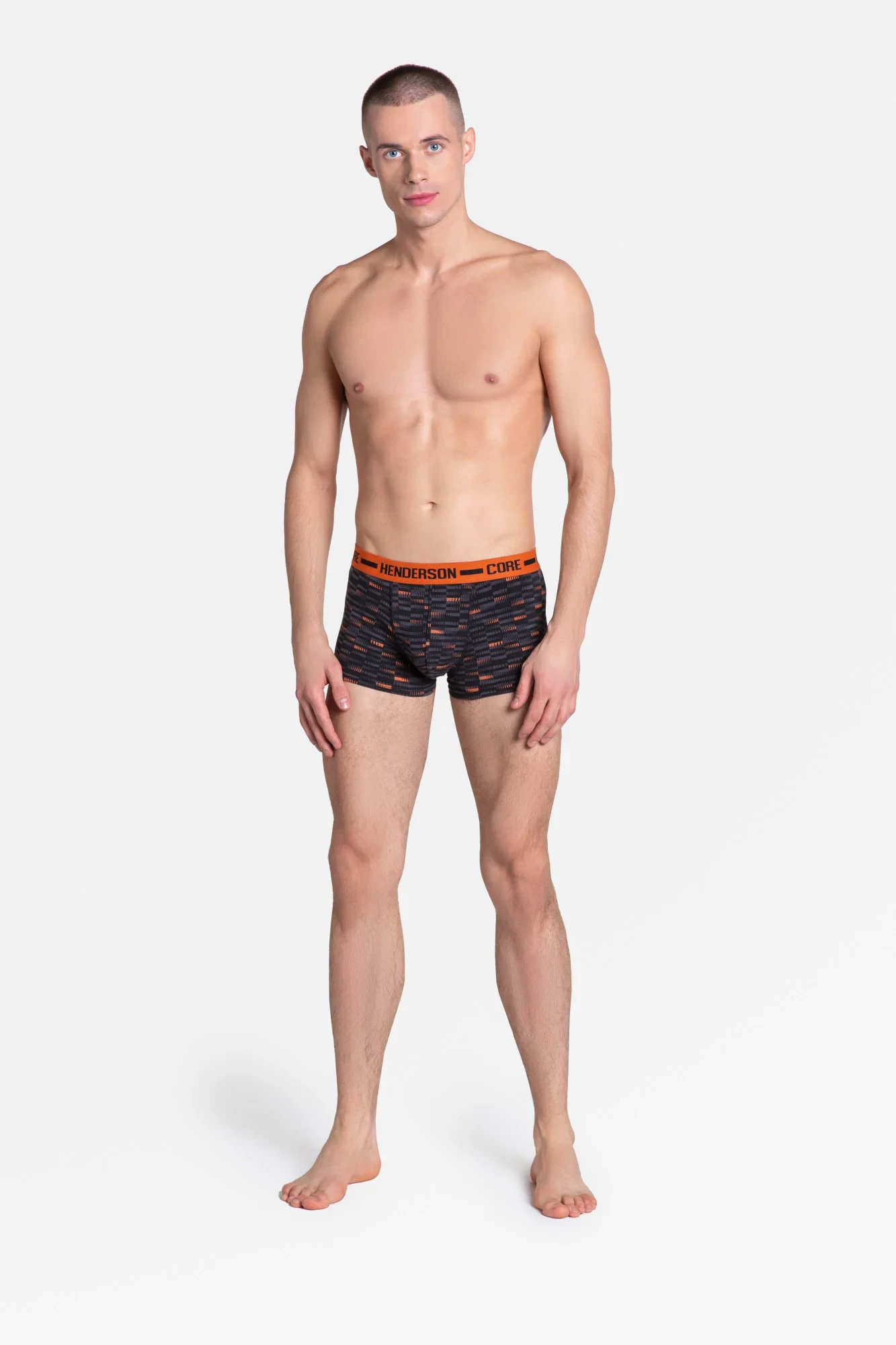 Máte chuť na zajímavý design? - Ozzy jsou pánské boxerky v grafitovém a oranžovém barevném provedení. Jedny jsou vzorované, druhé hladké, obojí zakončené vzorovanou ozdobnou gumou v pase, která ladí s barvou spodního prádla. Složení: 95% bavlna, 5% elastan.