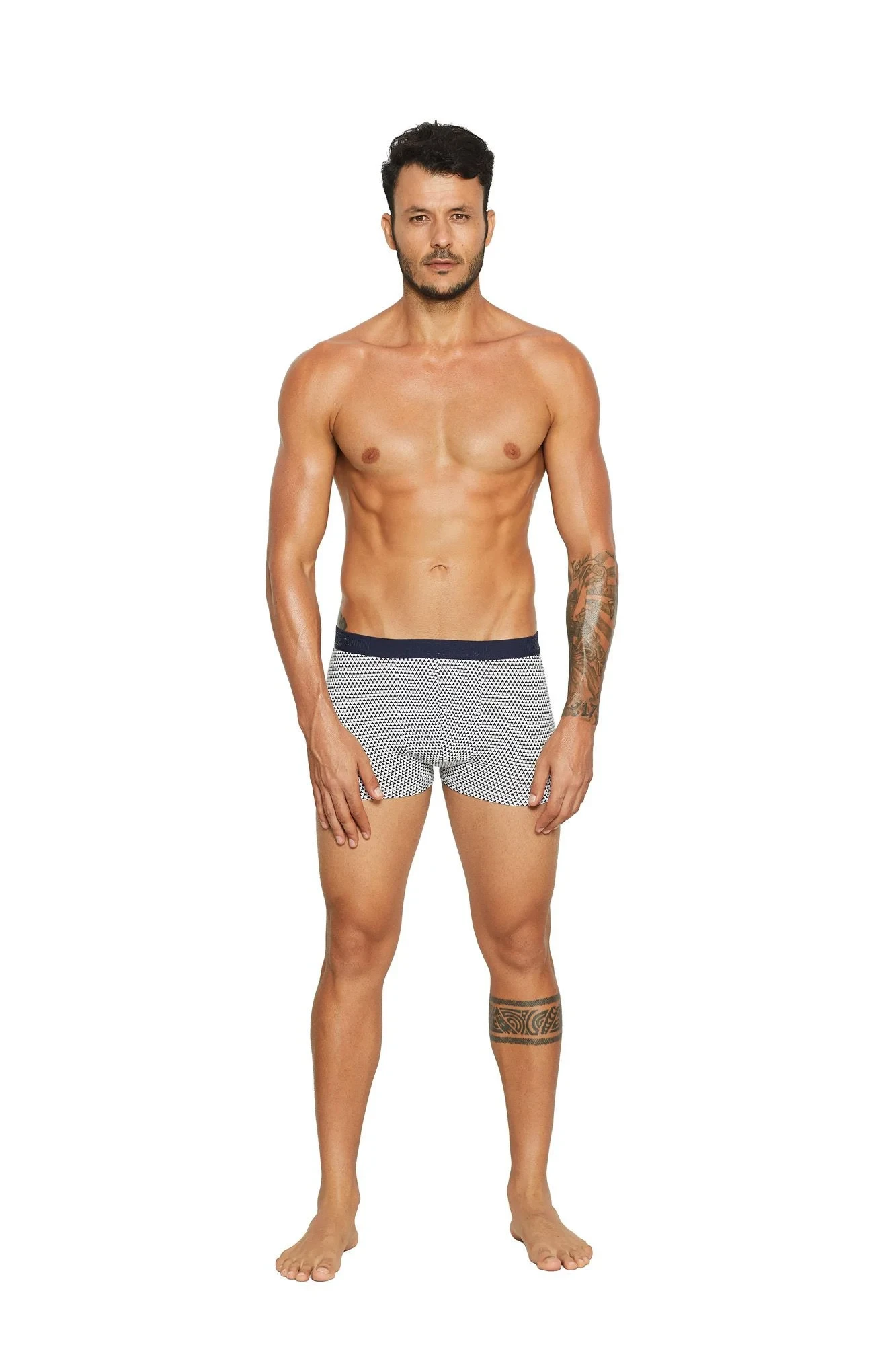 Další hitová edice malých, fascinujících tisků v klidných barvách. Vision jsou boxerky přesně na míru v lehkém, nápadném geometrickém vzoru. Kontrastní elastický pas s logem značky. Měkká tkanina, nohavice s netlakovou úpravou. Složení: 95% bavlna, 5% elastan. EAN čárové kódy zboží jsou: