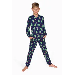 Chlapecký overal z kvalitní bavlny ve slavnostním vzoru, zapínání na zip. Rukávy a nohavice s žebrovanými manžetami, praktické kapsy na úrovni boků.