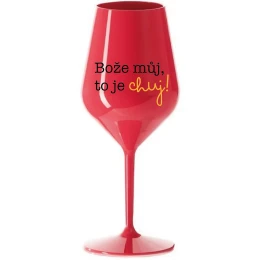 BOŽE MŮJ, TO JE CHUJ - červená nerozbitná sklenice na víno 470 ml