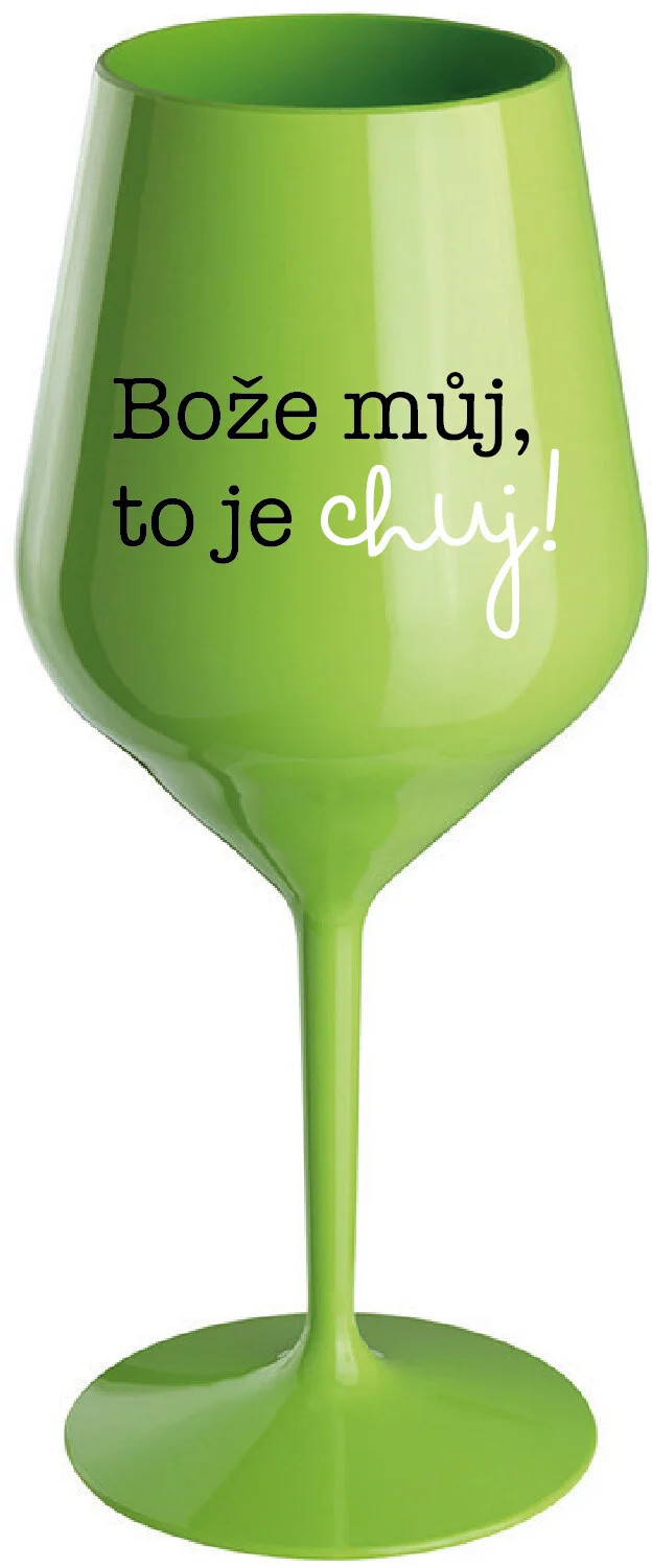BOŽE MŮJ, TO JE CHUJ - zelená nerozbitná sklenice na víno 470 ml