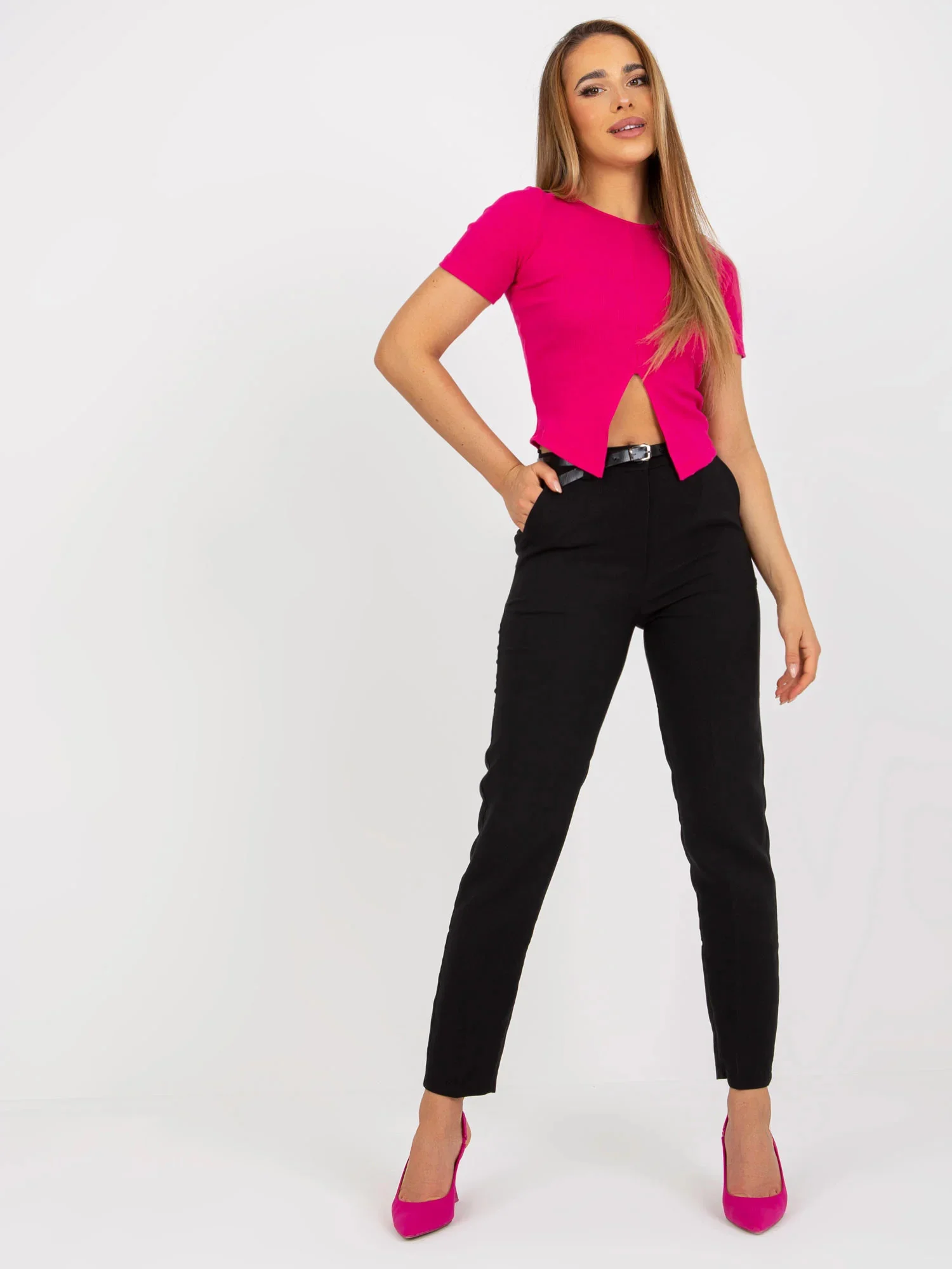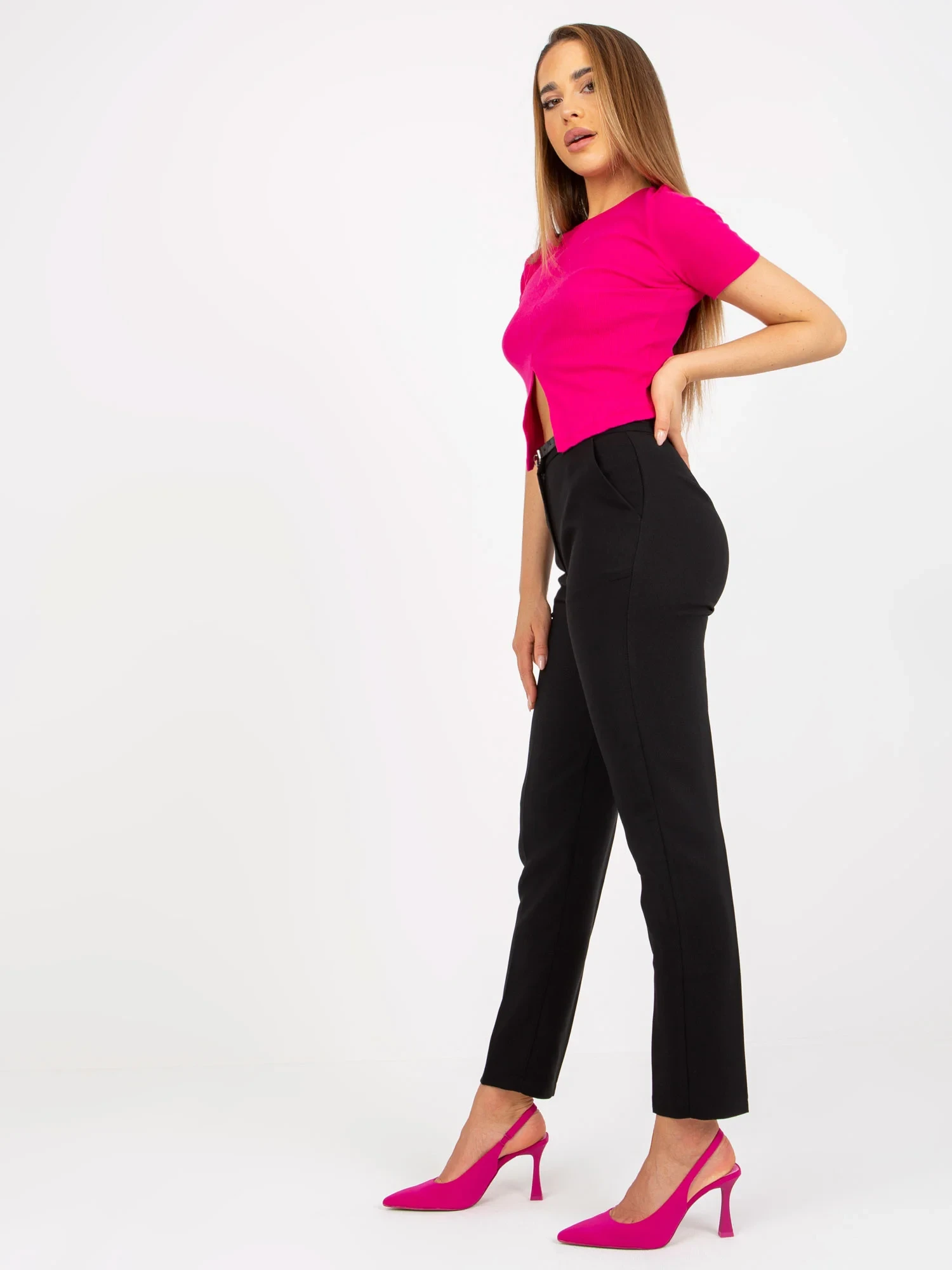 doplňky: pásek, boční kapsy, všitá zadní kapsa