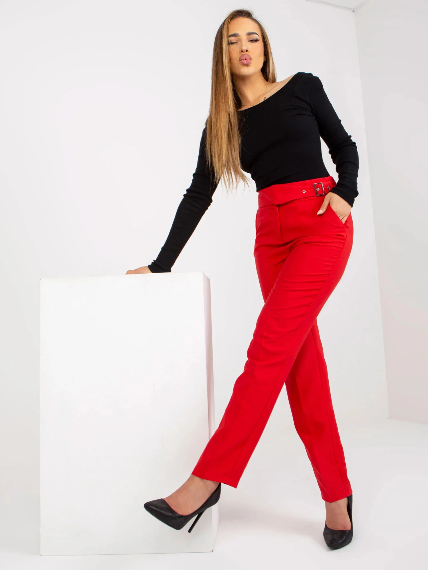 Modelka má na sobě velikost 36. Rozměry modelky: výška 167 cm, prsa 82 cm, pas 59 cm, boky 83 cm.