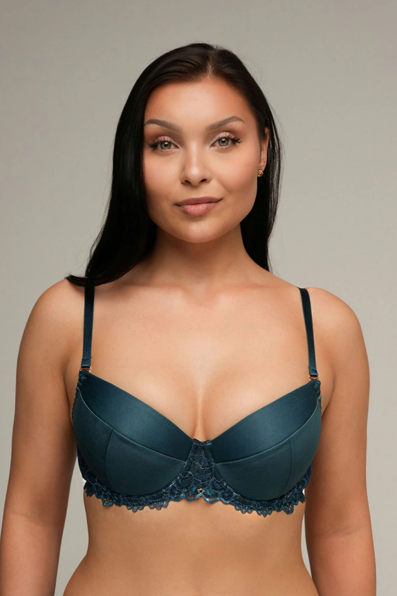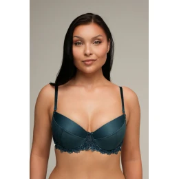 Biustonosz Push-Up z wyjmowaną wkładką to idealne rozwiązanie dla kobiet, które chcą same decydować o intensywności efektu powiększenia i uniesienia biustu. Dzięki miękkim, wyprofilowanym miseczkom oraz fiszbinom stanik doskonale podtrzymuje i modeluje piersi, tworząc pięknie zaokrąglony dekolt. Wyjmowane wkładki push-up pozwalają na dopasowanie biustonosza do indywidualnych potrzeb – od delikatnego wymodelowania po mocniejsze podkreślenie biustu. Eleganckie wykończenie koronką u dołu oraz subtelny akcent biżuteryjny nadają całości szyku i kobiecego charakteru. Regulowane ramiączka oraz klasyczne zapięcie na haftki zapewniają pełen komfort i idealne dopasowanie.