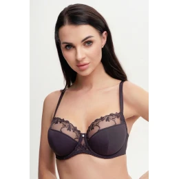 Biustonosz AV 1030/2 Cold Espresso to elegancki, półusztywniany model w odcieniu głębokiej czekolady, który łączy w sobie komfort i zmysłowy wygląd. Górna część miseczek wykonana jest z delikatnego tiulu ozdobionego subtelnym, kwiatowym haftem, który dodaje biustonoszowi lekkości i romantycznego charakteru. Dolna część miseczek delikatnie unosi i modeluje biust, zapewniając naturalny, pełny kształt. Biustonosz posiada regulowane ramiączka oraz zapięcie na haftki, co gwarantuje idealne dopasowanie do sylwetki. To doskonały wybór dla kobiet ceniących elegancję i wygodę każdego dnia.