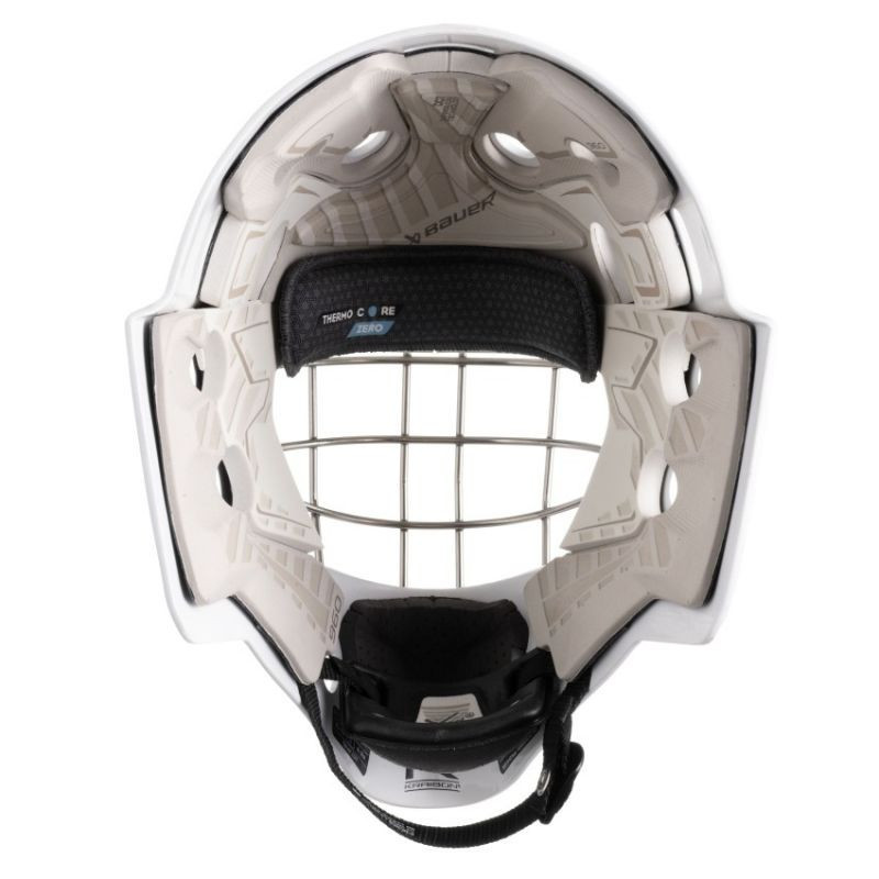 Maska bramkarska Bauer 960 '24 Sr To klejnot koronny wśród masek bramkarskich BAUER, teraz jeszcze bardziej ulepszona. Dzięki skorupie KRAIBON i bezszwowej podszewce, maska oferuje doskonałą ochronę, idealne dopasowanie, styl i komfort, spełniając oczekiwania najlepszych bramkarzy. Główne cechy: Skorupa KRAIBON: Zaprojektowana, aby zmniejszać drgania i zwiększać amortyzację dzięki lekkiemu, hybrydowemu materiałowi pochłaniającemu i rozpraszającemu energię uderzenia. Defense Cloud Tech (DCT): Lekka i trwała wyściółka w koronie zapewniająca wygodę, jednocześnie redukująca zatrzymywanie potu i wody. PORON XRD: Dodatkowe materiały na policzkach, czole, koronie i płycie tylnej zapewniające komfort noszenia nawet po intensywnych meczach. DCT Ergo Chin Cup: Głębsza miseczka podbródkowa dla większego komfortu i lepszego dopasowania. Maska bramkarska Bauer 960 '24 Sr to niezrównana ochrona i wygoda dla elitarnych bramkarzy. Dzięki zaawansowanym technologiom, takim jak Defens