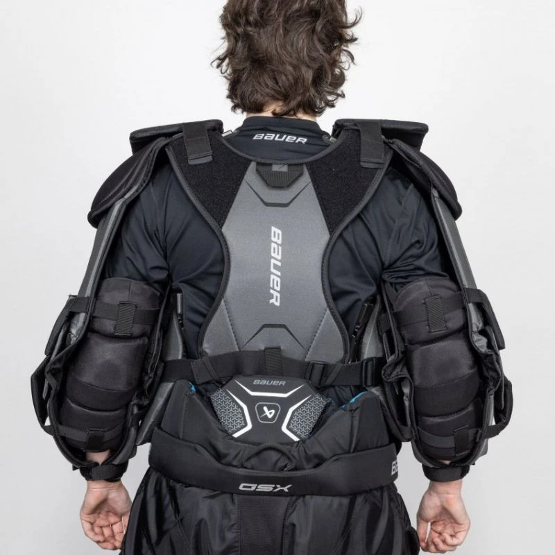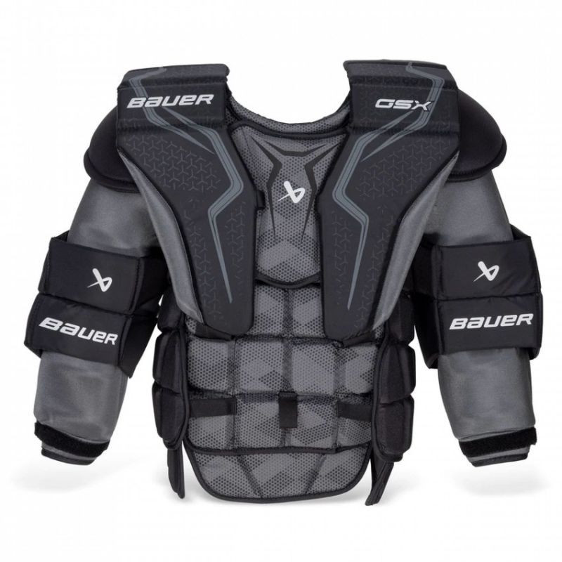 Brankářská vesta Bauer GSX '23 Sr Lehká tradiční konstrukce určená pro začínající nebo rekreační brankáře vám pomůže cítit se mezi tyčemi pohodlně a začít hájit svou branku.Klíčové vlastnostiVesta Bauer S23 GSX je prémiovou volbou pro hokejové brankáře, kteří hledají vynikající ochranu, pohodlí a mobilitu na ledě.Navržena tak, aby odolala nárokům hry na vysoké úrovni a poskytla brankáři jistotu a klid potřebný k dosažení nejlepších výkonů.Vylepšení hmotnosti - o 5 % lehčí než předchozí model Bauer GSX.
