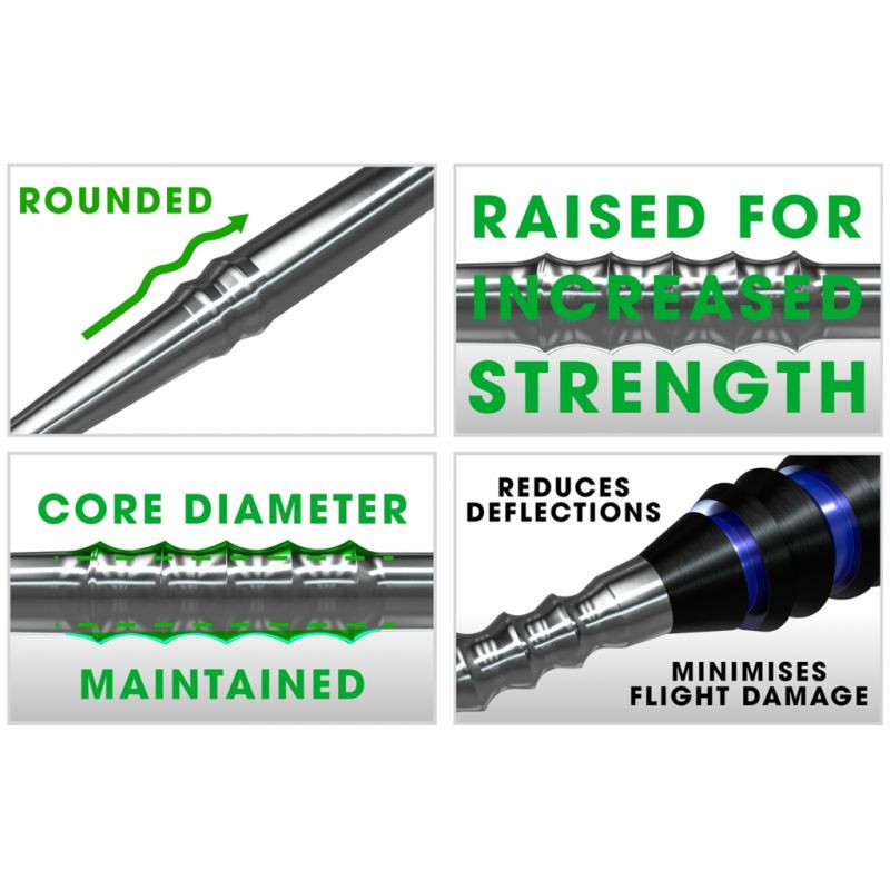 - Minimalizované poškození terče - hladký, přesný povrch snižuje opotřebení terče a zlepšuje úchop šipky