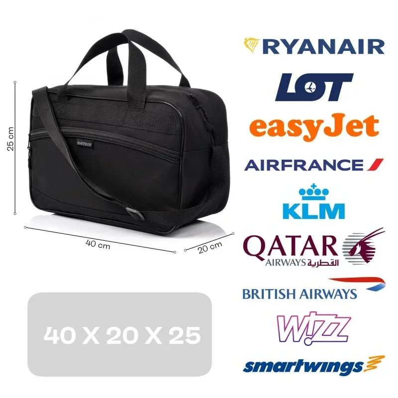 - Jejíkompaktní rozměry 40x20x25 umožňují její umístění pod sedadlo v letadle.
