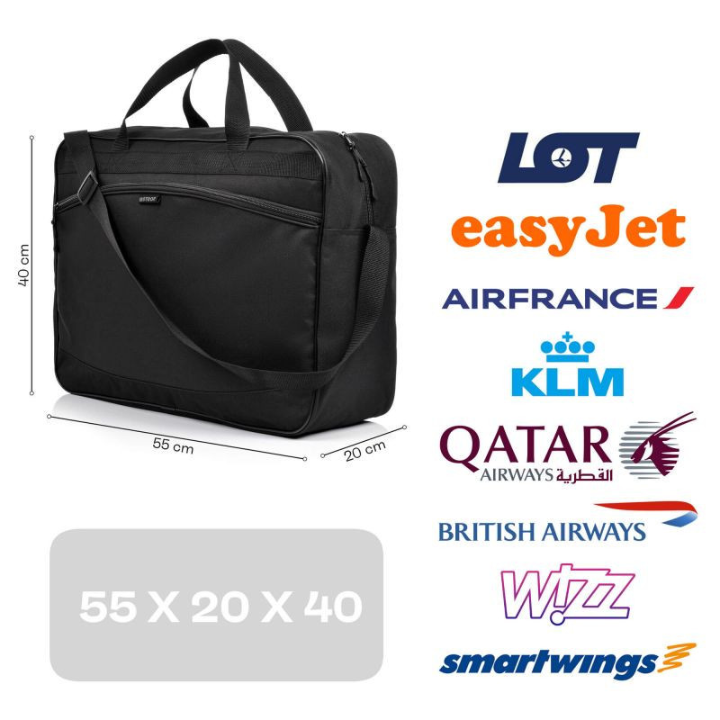 Oszczędność czasu i pieniędzy – dzięki specjalnym rozmiarom torba spełnia wymagania większości linii lotniczych dotyczących bagażu podręcznego. To pozwoli Ci uniknąć dodatkowych kosztów za nadbagaż oraz długiego oczekiwania na odbiór bagażu po wylądowaniu.