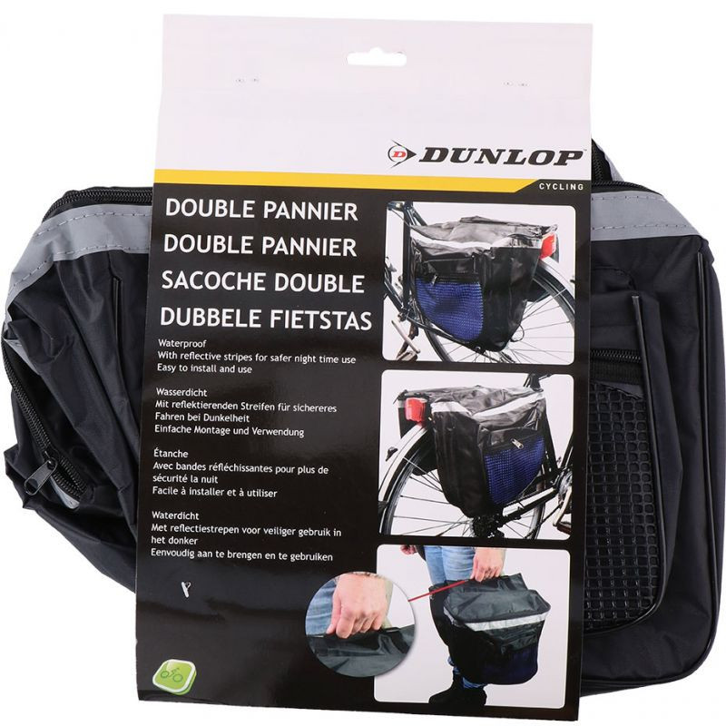 Do této dvojité brašny se vejde vaše výbava na výlet na kole nebo nejnutnější věci na cestu do práce. Voděodolný nylon účinně chrání obsah před vlhkostí. Dvojité nosné tašky jsou připevněny pevnými pásky na suchý zip. Dlouhé zipy pro snadný přístup k obsahu. Vnitřní prostor. Boční kapsy. Reflexní prvky. Černé brašny Dunlop o objemu 26 l jsou vybaveny pohodlnou rukojetí, která umožňuje pevné držení brašen v ruce.
