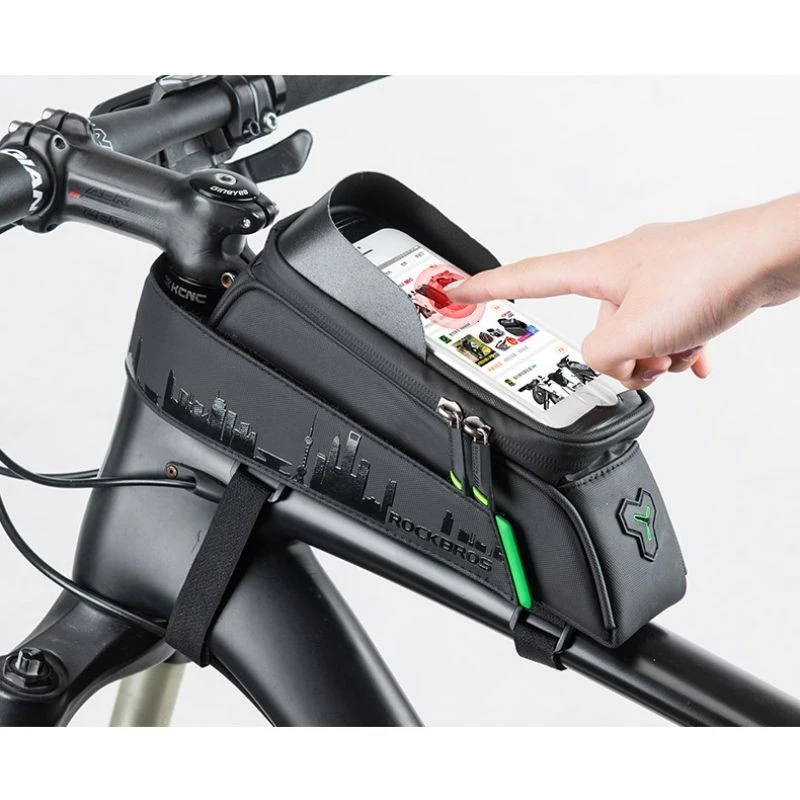 Pouzdro na telefon se značkou Rockbros na rámu.