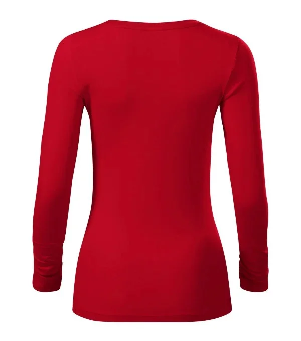 strečový materiál udržující stálost tvaru přiléhavý střih s bočními švy hlubší kulatý výstřih úzký lem průkrčníku z žebrového úpletu 1:1 s 5 % elastanu vnitřní část průkrčníku začištěna kontrastní páskou zpevnění ramenních švů páskou dlouhé rukávy