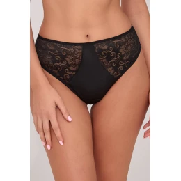 Zmysłowe czarne figi typu brazyliany to idealne połączenie komfortu i kobiecego stylu. Model wykonany z delikatnej, elastycznej tkaniny zapewnia idealne dopasowanie do ciała, a tył wycięty w stylu brazylijskim subtelnie podkreśla pośladki. Przód zdobi elegancka, transparentna koronka z kwiatowym motywem, która dodaje całości luksusowego charakteru. Bezszwowe wykończenia na pośladkach sprawiają, że majtki pozostają niewidoczne pod ubraniem. Idealne do noszenia na co dzień, jak i na specjalne okazje – kiedy chcesz czuć się wyjątkowo i pewnie.