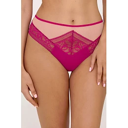 Bikiny AV 2220 Fuchsia jsou speciální nabídkou pro ženy, které ocení smyslné spodní prádlo ve výrazné barvě. Intenzivní odstín fuchsiové dokonale podtrhuje charakter modelu a přední část kalhotek zdobí kombinace průhledného tylu a působivé geometrické krajky, která opticky zeštíhluje siluetu.