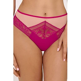 Bikiny AV 2219 Fuchsia jsou kvintesencí ženské smyslnosti. Přední díl zdobí jemná krajka v intenzivním fuchsiovém odstínu, decentně kombinovaná s průsvitným tylem, který vytváří zajímavou hru průhlednosti. Zadní díl, charakteristicky vykrojený, smyslně odhaluje linii hýždí a zároveň zůstává pohodlný a lehký díky použití hladkého mikrovlákna.