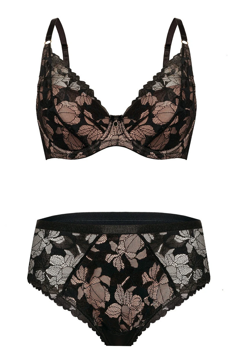 Zmysłowe figi damskie typu wysokie brazyliany Hanna DB52 to połączenie elegancji, komfortu i nowoczesnego kroju. Wykonane z delikatnej, kwiatowej koronki podszytej subtelną beżową siateczką, pięknie dopasowują się do sylwetki, podkreślając kobiece kształty. Tył z finezyjnie wyciętej koronki subtelnie odsłania pośladki, dodając bieliźnie zmysłowego charakteru. Wysoki krój z szerokimi bokami gwarantuje wygodę i idealne dopasowanie, a płaska, elastyczna gumka w pasie zapewnia komfort noszenia przez cały dzień. To wyjątkowe figi dla kobiet, które cenią sobie elegancję, kobiecość i wygodę w jednym.