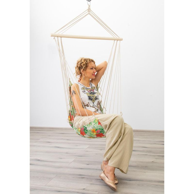 BRAZILSKÁ ZÁVĚSNÁ SEDAČKA HAMAK 100x50CM NATURE S TROPICKÝMI DŽUNGLOVÝMI PODRUČKAMI