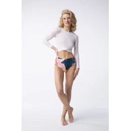 Bikiny s vysokým pasem jsou dokonalou kombinací klasických kalhotek a tang, ideální pro ženy, které si cení pohodlí i módního vzhledu. Díky hlubšímu střihu na hýždích bikiny zdůrazňují přirozené zaoblení siluety, což jim dodává na půvabu a smyslnosti. Model Brasil Maxi se dále vyznačuje zvýšeným horním dílem. Pro ženy, které nepreferují tanga z důvodu nepohodlí, které pociťují, je model Brasil s vysokým pasem vynikající alternativou. Umožňují cítit se sebejistě a smyslně a zároveň jsou pohodlné. Tutti Frutti je ovocná abstrakce, která se stává návrhem potisku pro nadcházející jarní a letní měsíce. Lákavé, teplé barvy vytvářejí kompozici, která okamžitě vyvolává asociace s radostným létem. Abstraktní kapky připomínají plátky melounu a vytvářejí jedinečný a energický vzor. Tato osvěžující estetika s sebou přináší atmosféru svěžesti a radosti. Vzor Tutti Frutti je jako pozvánka na letní dobrodružství, kde se šťavnaté ovoce stává hlavními postavami módní scény. Lákavé barevné kombinace odrážejí energii letního slunce, díky čemuž se nositel potisku cítí jako skutečná hvězda letních dnů.