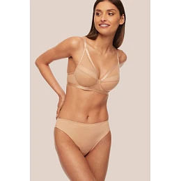 Béžové brazilské figy Comfort B-861/2 jsou skvělou kombinací elegance a každodenní pohodlí. Střih opticky prodlužuje nohy, jemně zdůrazňuje ženskou siluetu a dodává jí lehkost. Model je vyroben z měkké, příjemné na dotek látky, která zaručuje pohodlí po celý den. Zadní část z dvojité vrstvy jemného tylu zajišťuje, že spodní prádlo zůstává neviditelné pod oblečením, poskytujíc hladký a přirozený efekt. Bavlněný vložka pečuje o svěžest a hygienu, díky čemuž se model ideálně hodí pro každodenní použití.