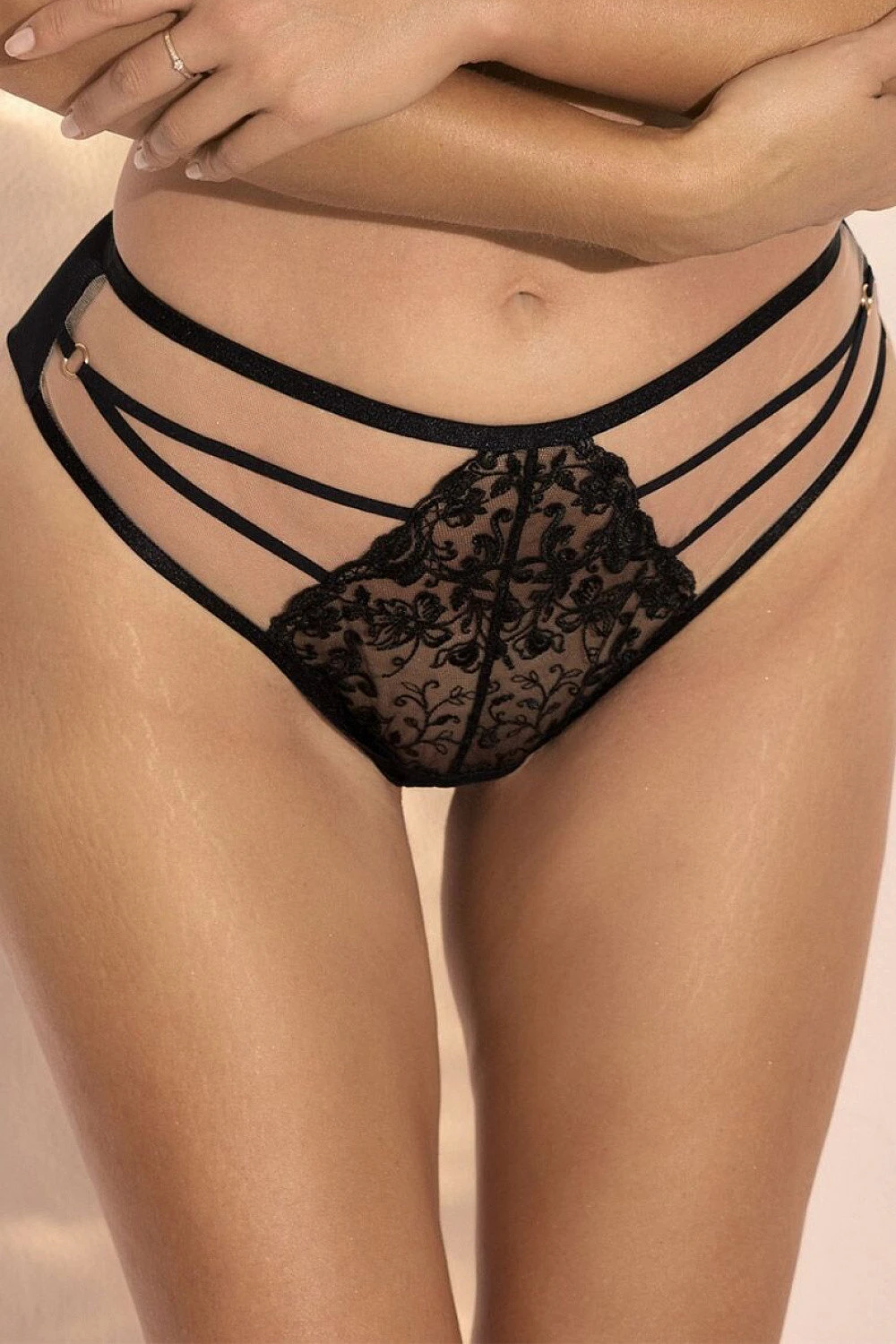 Figi brazyliany Kelly B-1192/2 ohromují dekorativním předním dílem, kde jemná krajka spolu s ozdobnými proužky dodává spodnímu prádlu výrazný a ženský charakter. Zadní část je vyrobena z hladké látky doplněné smyslnými šněrovacími detaily, které efektně zdůrazňují tvary. Model Kelly je skvělou volbou jak na speciální příležitosti, tak na běžné nošení pro ženy, které chtějí spojit atraktivní vzhled s pohodlností nošení.