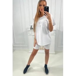 Představujeme vám sadu halenky a šortek. Halenka s vyraženým nápisem Brooklyn. Legíny mají krátkou nohavici. Sada je vyrobena z vysoce kvalitního materiálu. Velikost je univerzální a vyhovuje dámám, které nosí velikost S, M nebo L.