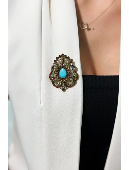 Brož model 18753855 zlato + modrá - K-Fashion