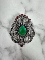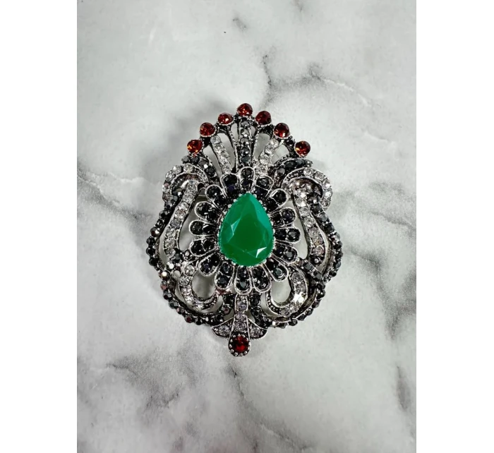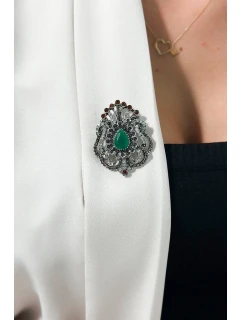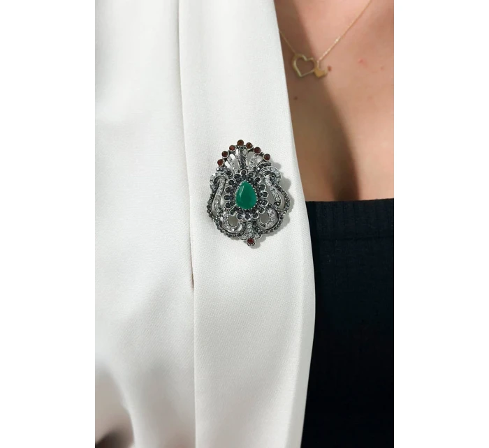Brož model 18753863 stříbrná + zelená - K-Fashion