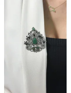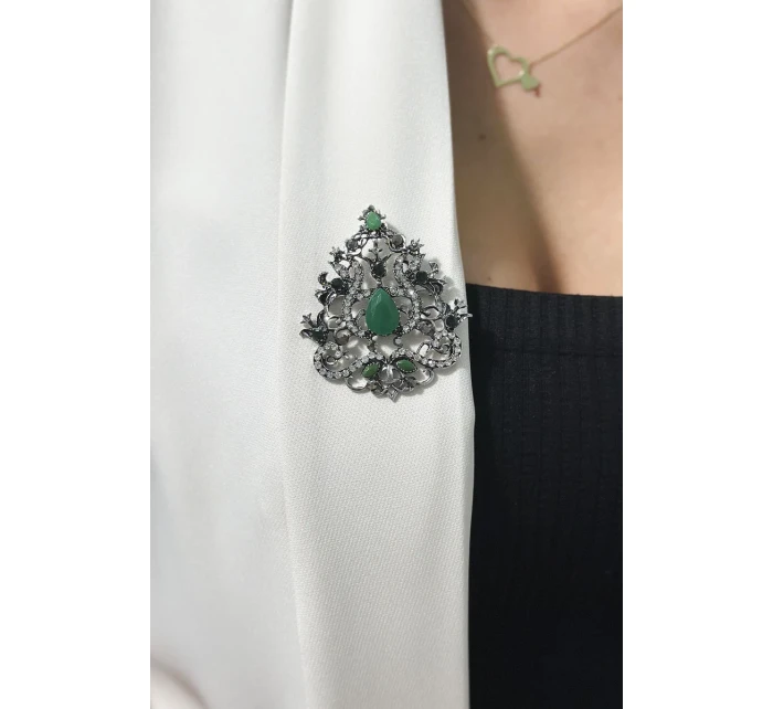 Brož model 18753879 stříbrná + zelená - K-Fashion