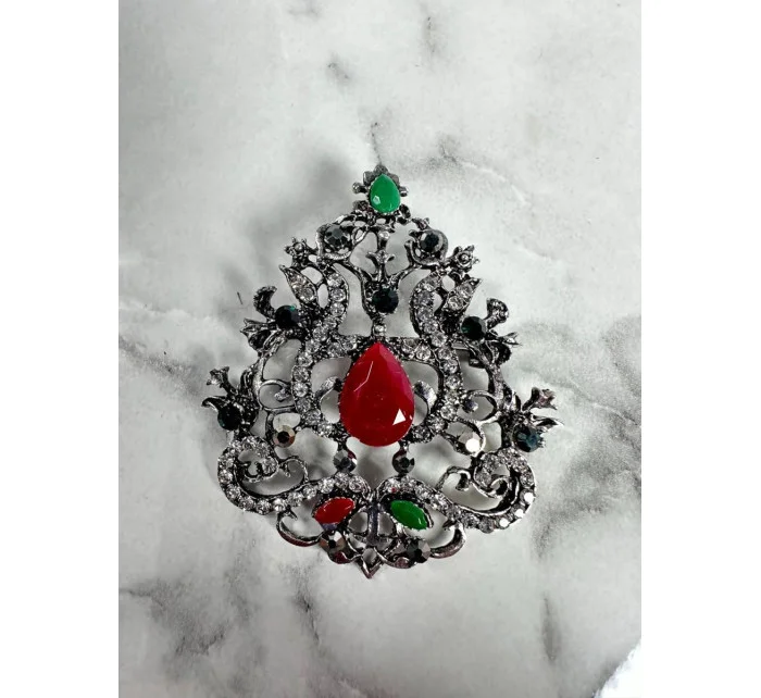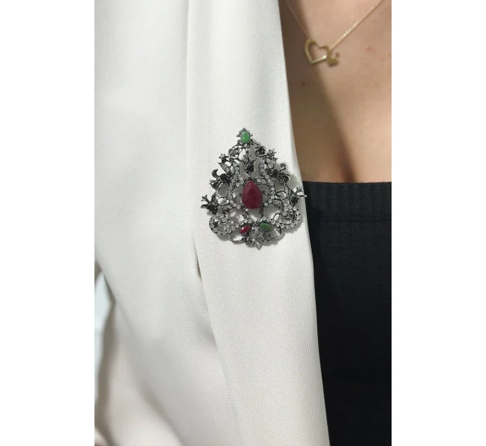 Brož model 18753881 stříbrná + červená - K-Fashion