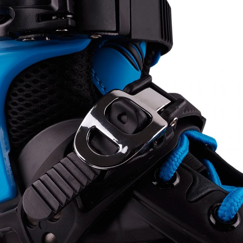 Łyżworolki Roces Yep 3x90 Tif czarno-niebieskie 400853 00001 Łyżworolki regulowane dla dzieci i młodzieży Roces polecane są dla średnio zaawansowanych i zaawansowanych użytkowników, którzy opanowali technikę jazdy. Wytrzymała konstrukcja buta daje możliwość regulacji rozmiaru za pomocą specjalnego przycisku znajdującego się w tylnej, dolnej części buta. Wysoka cholewka. But zewnętrzny wykonano z wysokiej jakości polipropylenu, a ramę z formowanego aluminium. 3-stopniowe zapięcie. Wbudowany na stałe but wewnętrzny z anatomiczną wkładką. Kółka tzw. kauczukowe osadzono na łożyskach ABEC-9. Dane techniczne:·Easy Entry System: ułatwia zakładanie i zdejmowanie rolki·zapięcie: dwie klamry mikrometryczne, sznurowadła·but: wysokogatunkowy polipropylen·kółka: 90 mm, 85A·łożyska: ABEC-9·rama: formowane aluminium·tuleje: aluminiowe·kółka: 90 mm, 85A, PU (potocznie nazywane kauczukowymi) · hamulec: tak·maksymalna waga użytkownika: 60 kg·model nie zawiera płozy łyż