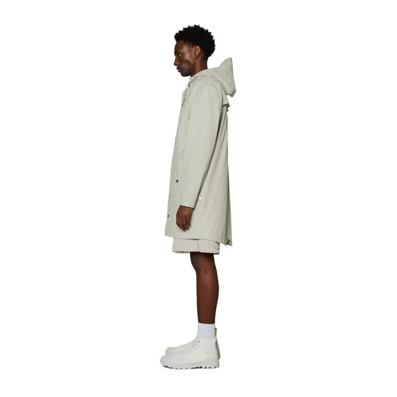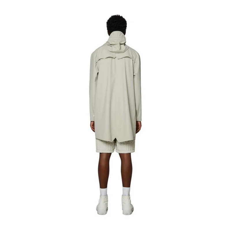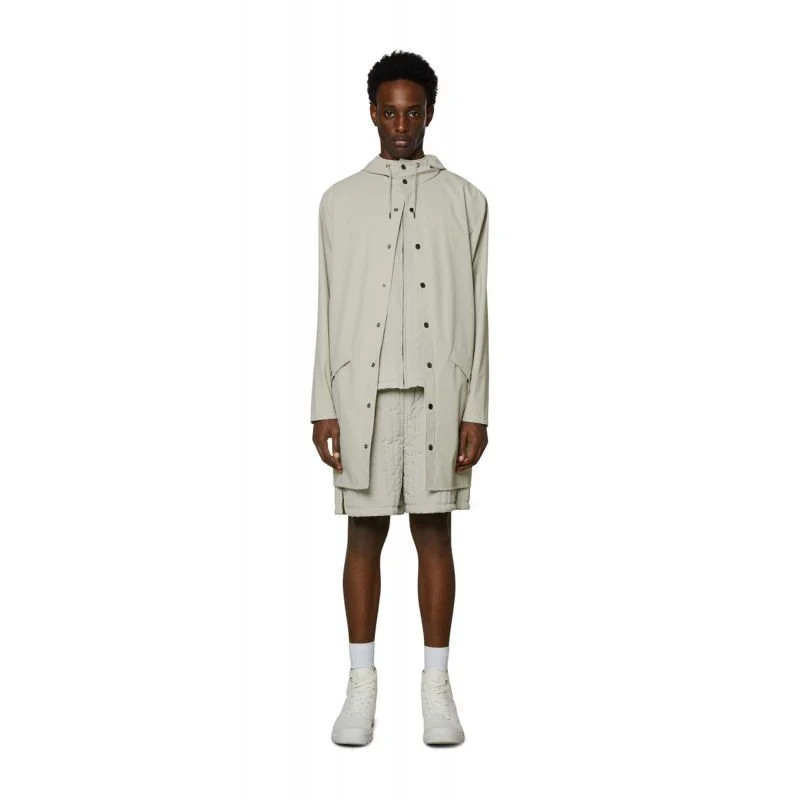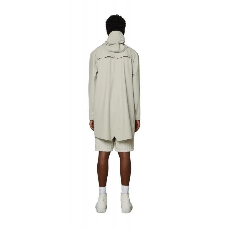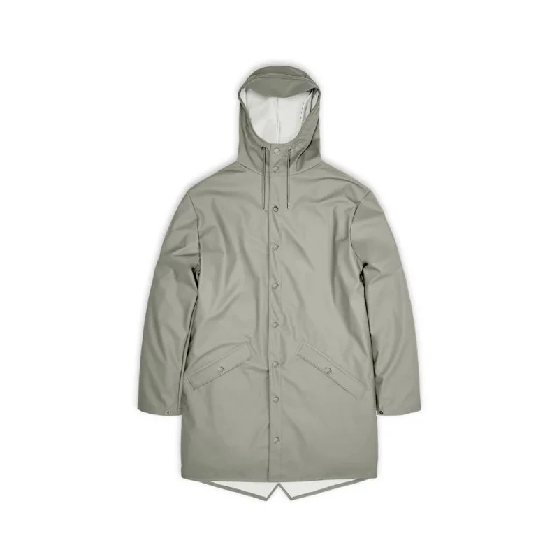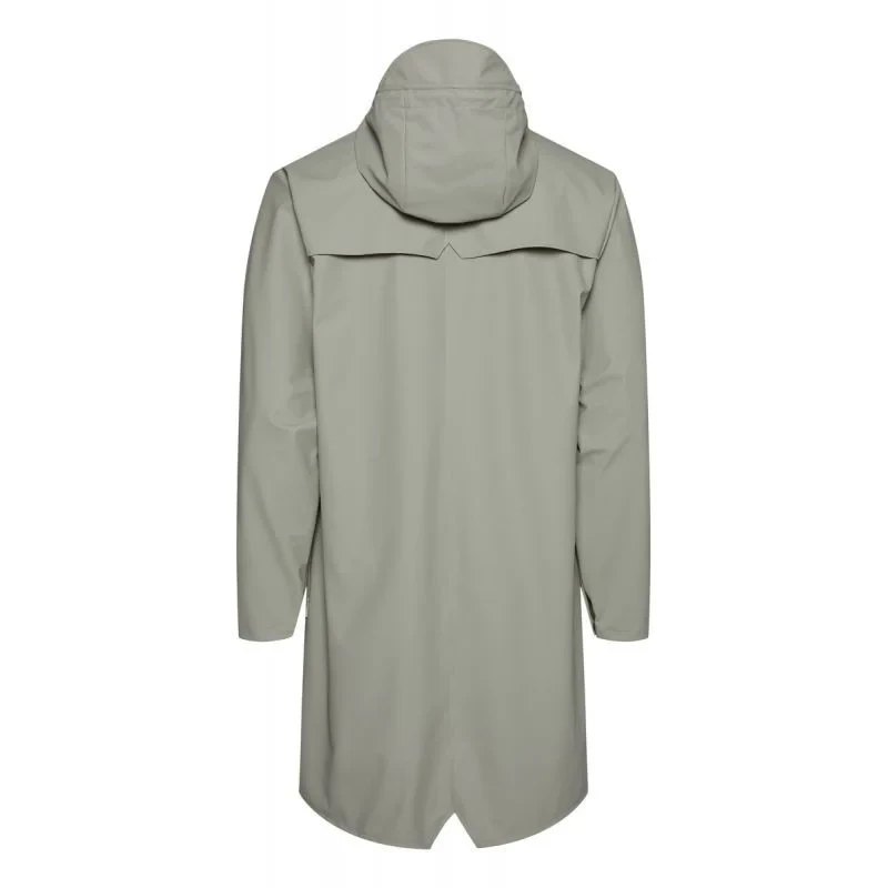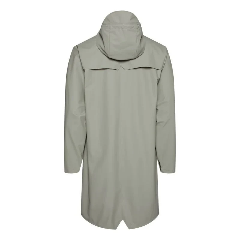 Dlouhá bunda je delší verzí klasické bundy Rain, Jacket.tato stále moderní unisexová bunda do deště poskytuje vysokou funkčnost v minimalistické siluetě.mezi vlastnosti patří dvojitě svařované diagonální kapsy s klopou, nastavitelné manžety a lemování rybím ocasem.celý vzhled je doplněn zapínáním na patentky, poutky v podpaží a zadním sedlem se skrytými rozparky.Tato nepromokavá bunda je ušita z typické PU tkaniny Rains a má ultrazvukově svařované švy.povrchová úprava je lehká, jemná na dotek a elegantně uvolněná.
