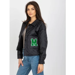 Černá prošívaná bunda se zapínáním na knoflíky .