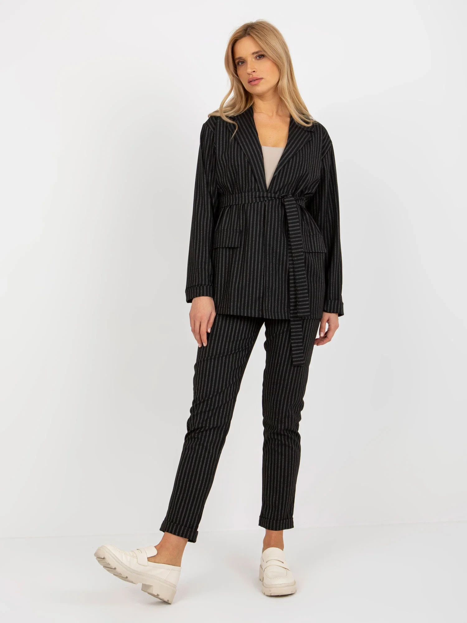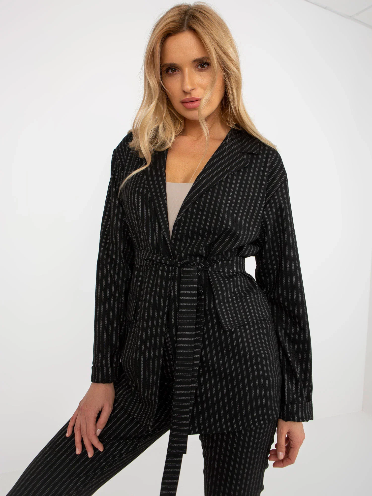 Černé elegantní pruhované sako .
